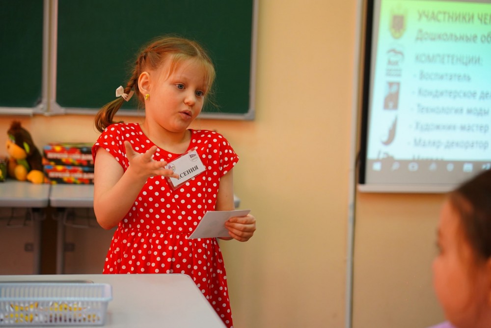 Ребятам предстояли непростые испытания: рассказать о профессии "Воспитатель" и нужных для неё инструментах, провести игровое занятие. Роль послушных воспитанников исполнили друзья конкурсантов. И всё это — под внимательным взглядом жюри.