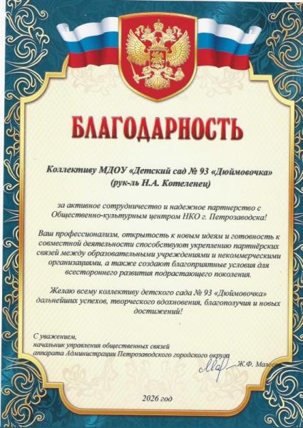 За активное многолетнее сотрудничество и партнерство с Общественно-культурным центром НКО г. Петрозаводска (ул. Шотмана, 8)
